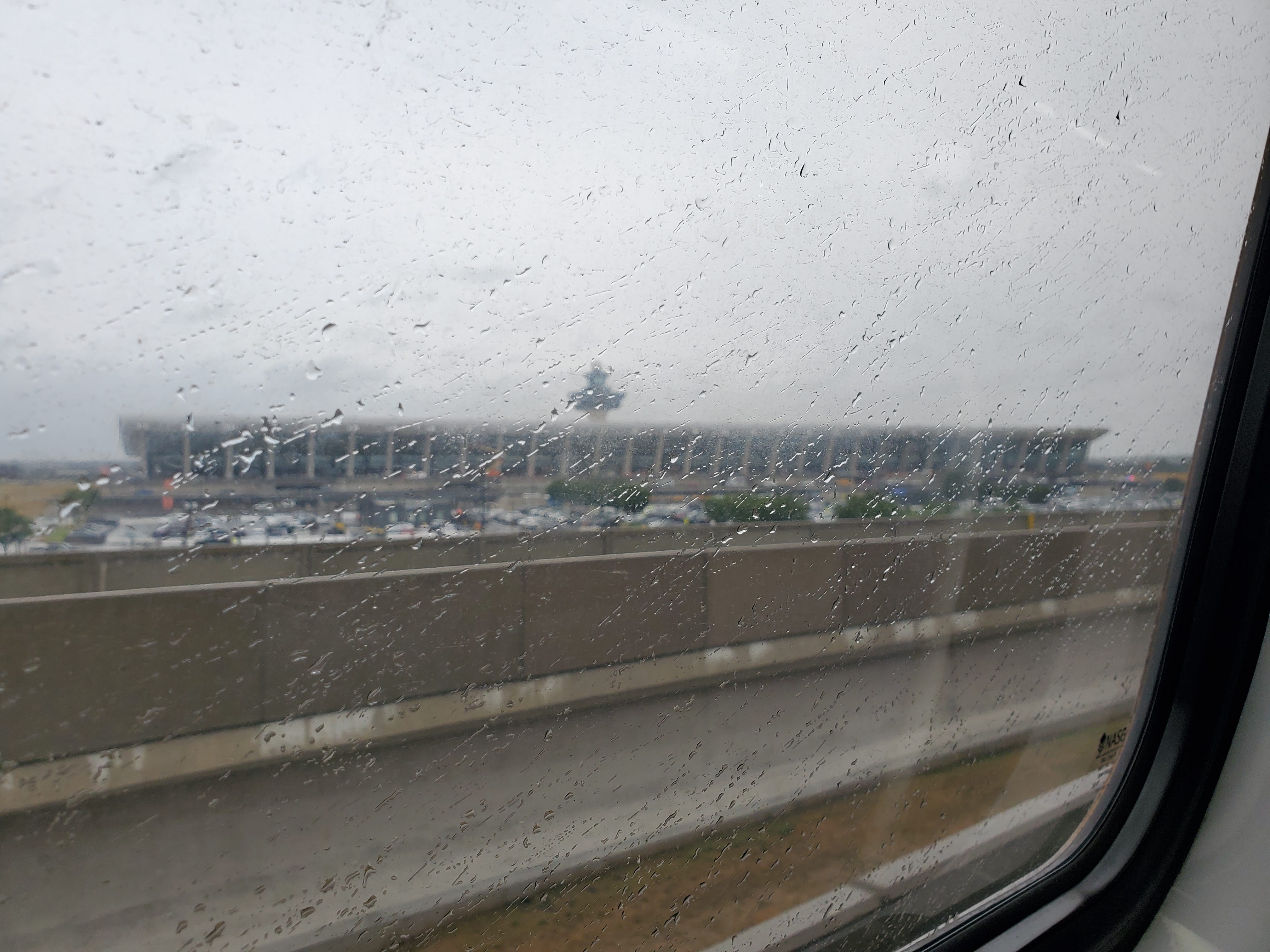 I also took the new Silver Line Metro extension, just to see what it would be like to arrive at an airport by train, which I’ve never done. My home is actually closer to the airport than it is to the closest Metro station, but it was very cool to step from the Metro platform down into the caverns of the place and emerge in the terminal. And you get this awesome view as the train approaches (it was raining that day):