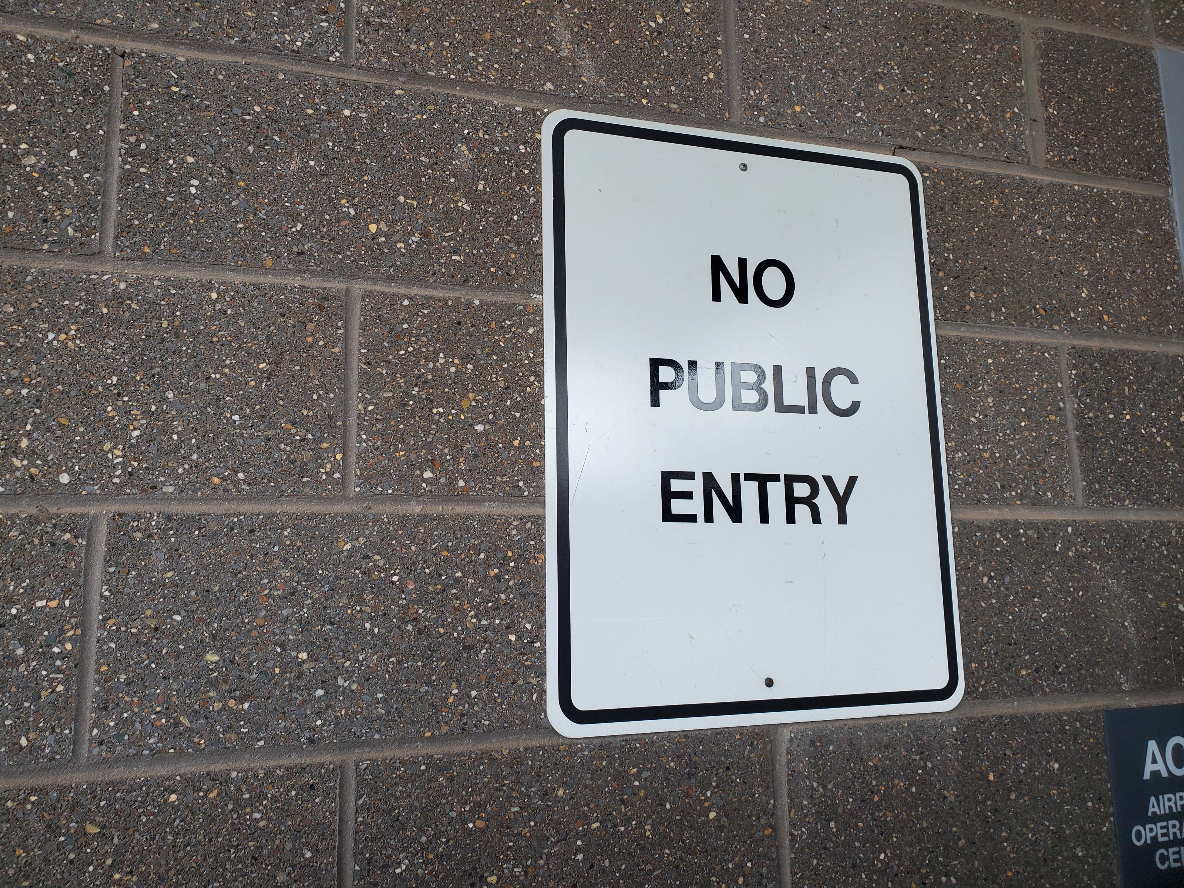 We were headed to the control tower, in the base of which sits the police HQ and the monitor bank, with selected live feeds from hundreds of security cameras around the property. Before we entered, we saw this sign: