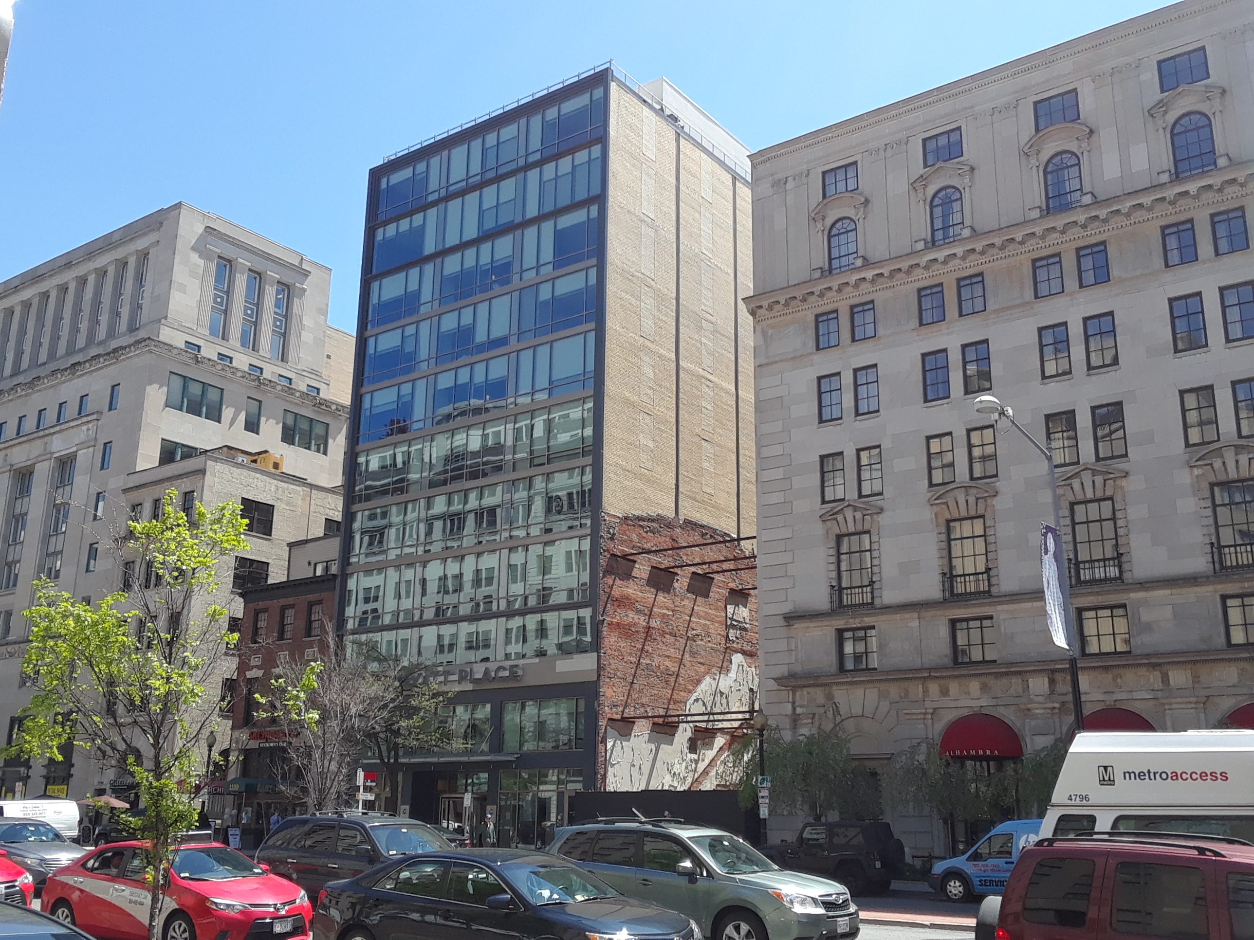 This reminded me that I’d seen a few “ghost buildings” in Washington, D.C. before, as well as some other curious examples of buildings being adapted in odd ways. So today’s entry in this series is not a single building, but various examples of “ghost buildings” and similar things I’ve seen. Here are a few, from when I used to work in downtown D.C.