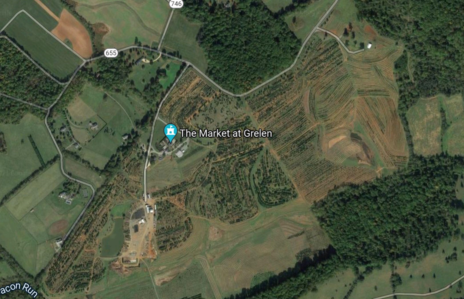 It’s counterintuitive to some people, but the real threat to “open space” is not places that are dense or crowded, but places that are sprawling and spread out. A lot of Northern Virginia once looked like that huge nursery—but huge amounts of land have been developed at very low densities. Let’s go back to the smaller suburban nursery, but with a more zoomed-out view.