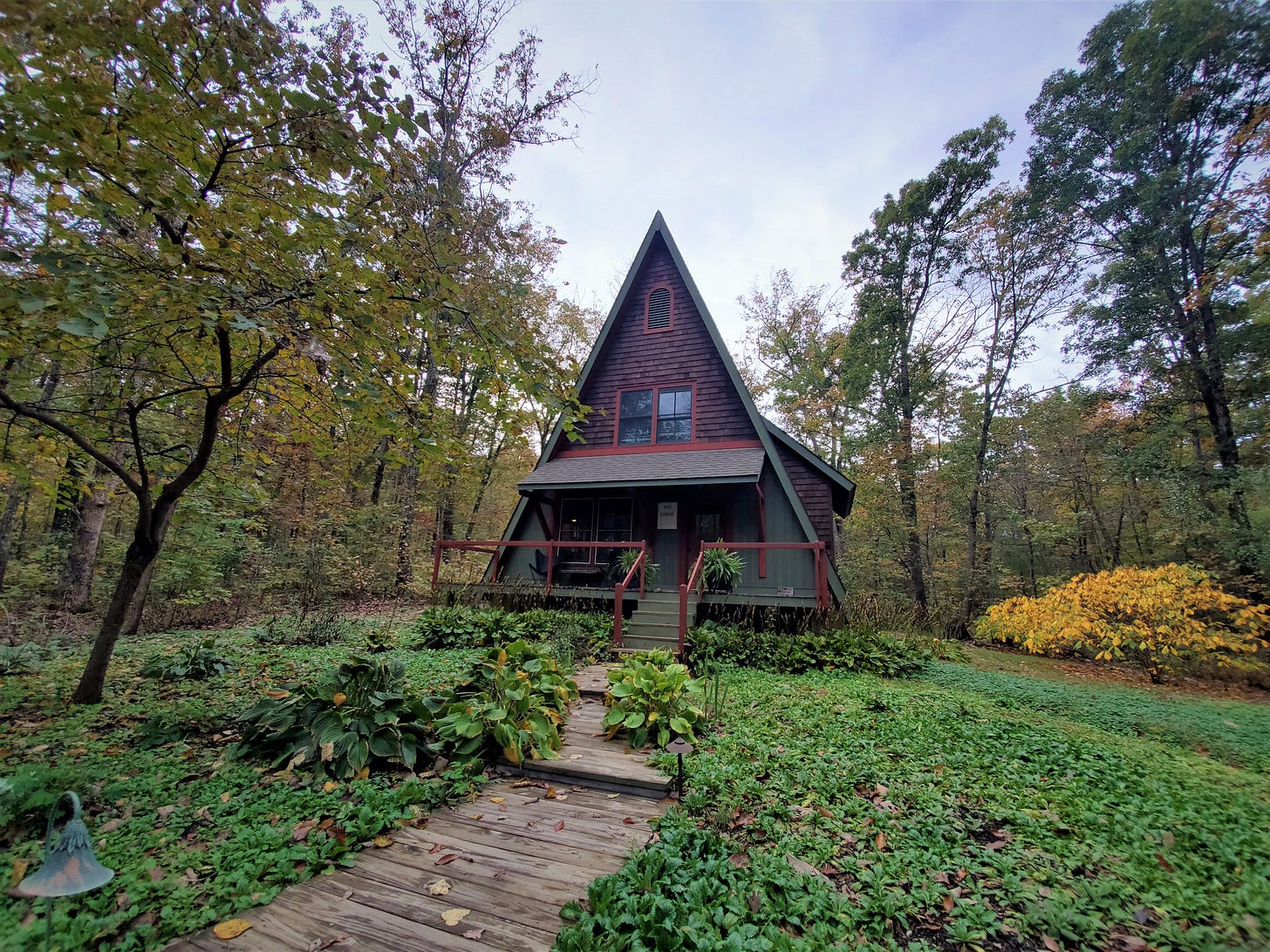 Back in late October, my wife and I stayed in an Airbnb cabin in Gordonsville, Virginia, about half an hour northeast of Charlottesville. This was our cabin, a new-construction A-frame. I show my wife too many pictures of retro buildings, and I especially like A-frames. She knew I would like this, and I sure did.