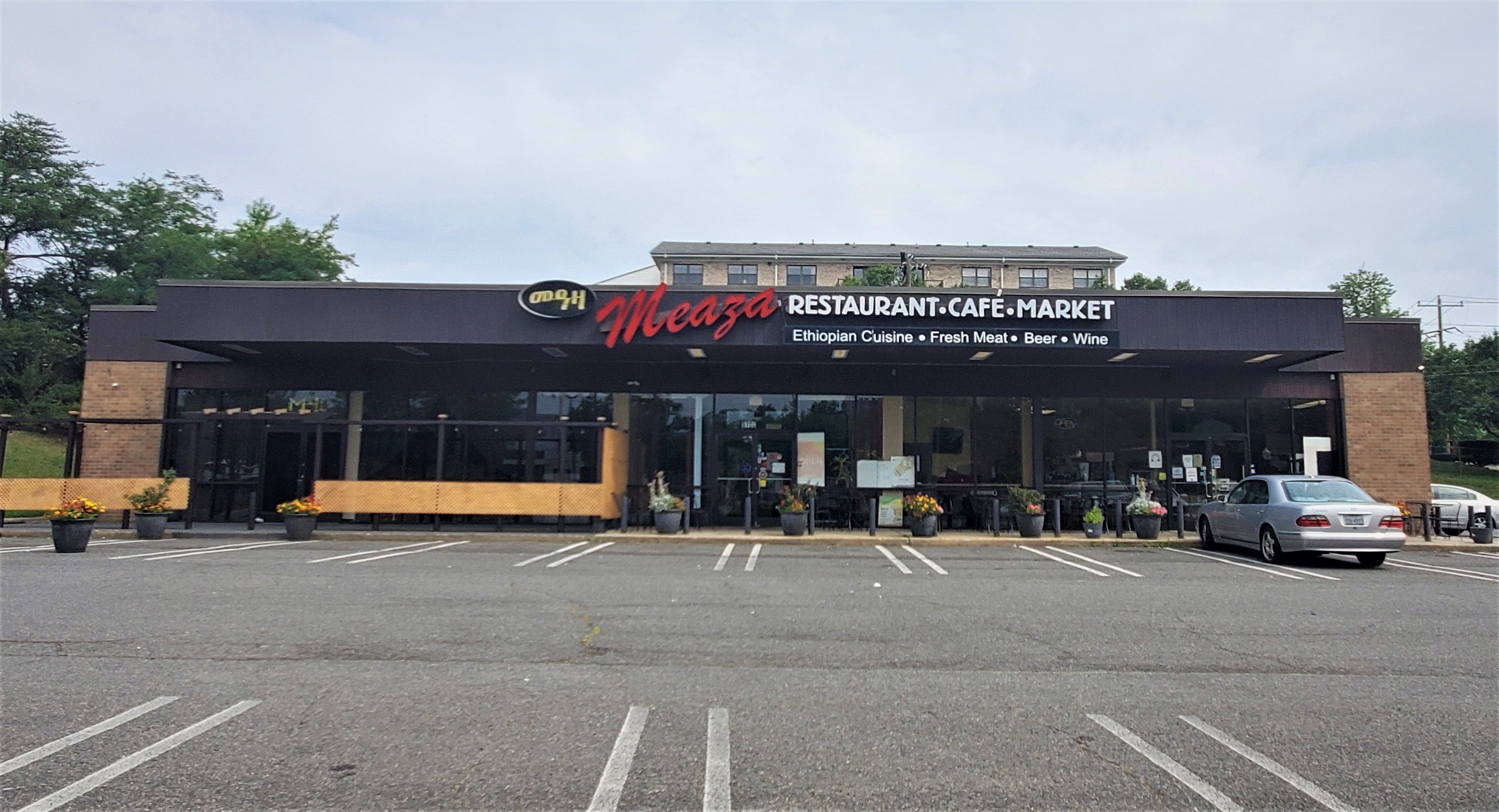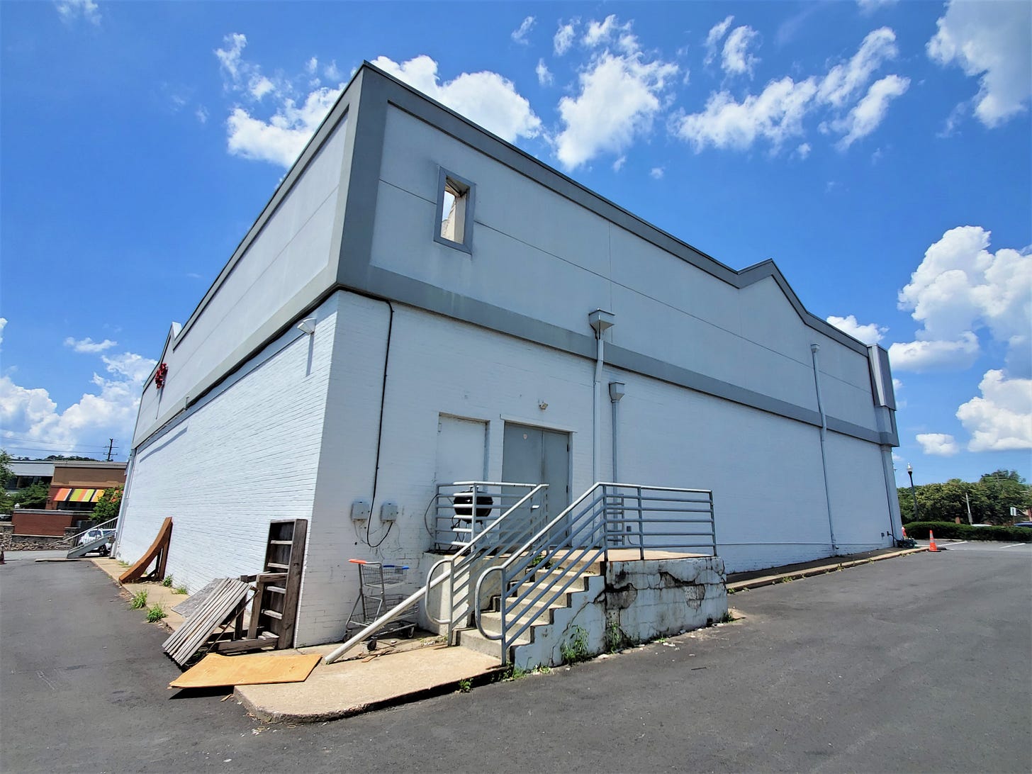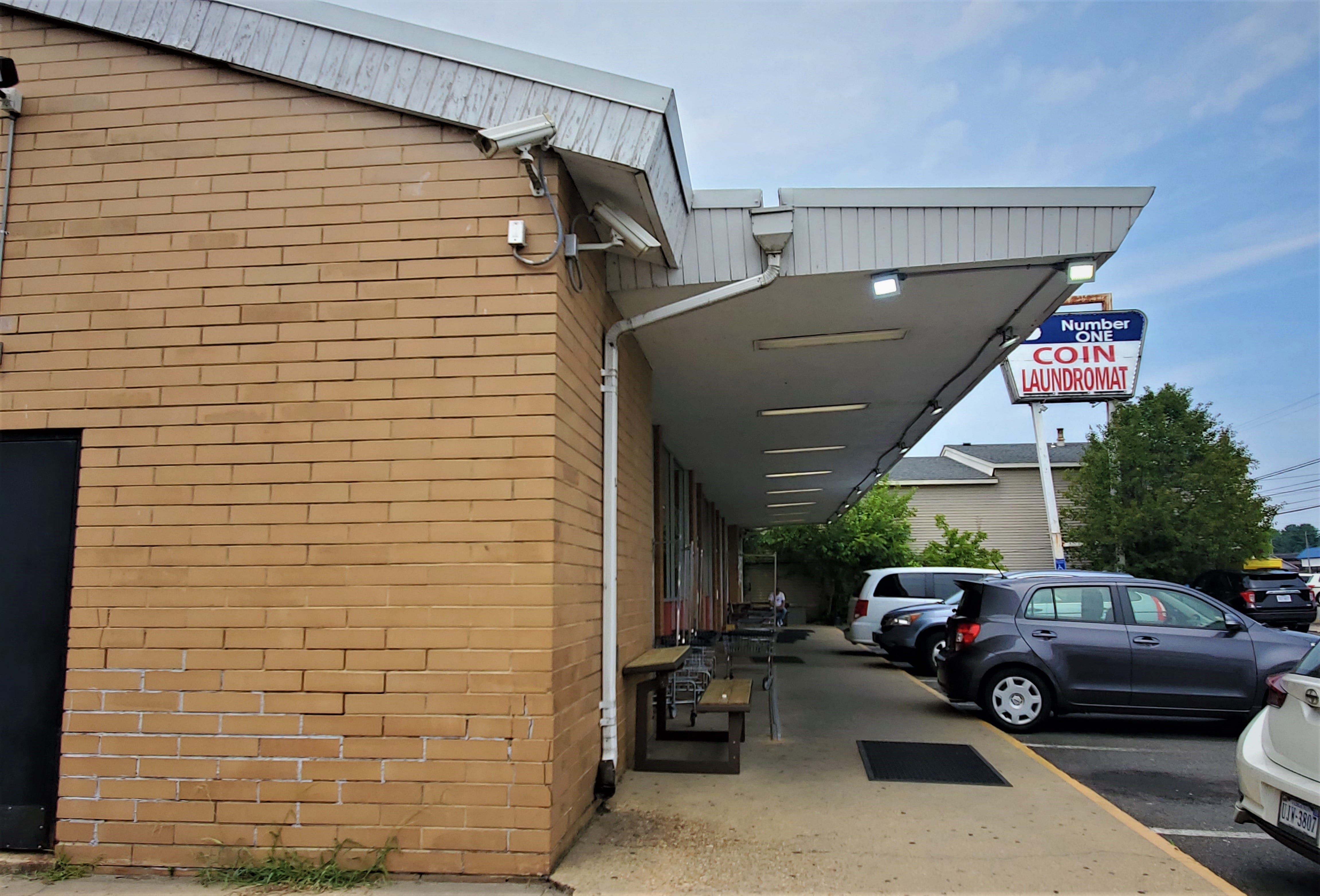 From the back, you can spot similar door placement to the Falls Church location, as well as the wall-like exterior façade which is hiding the original roof.