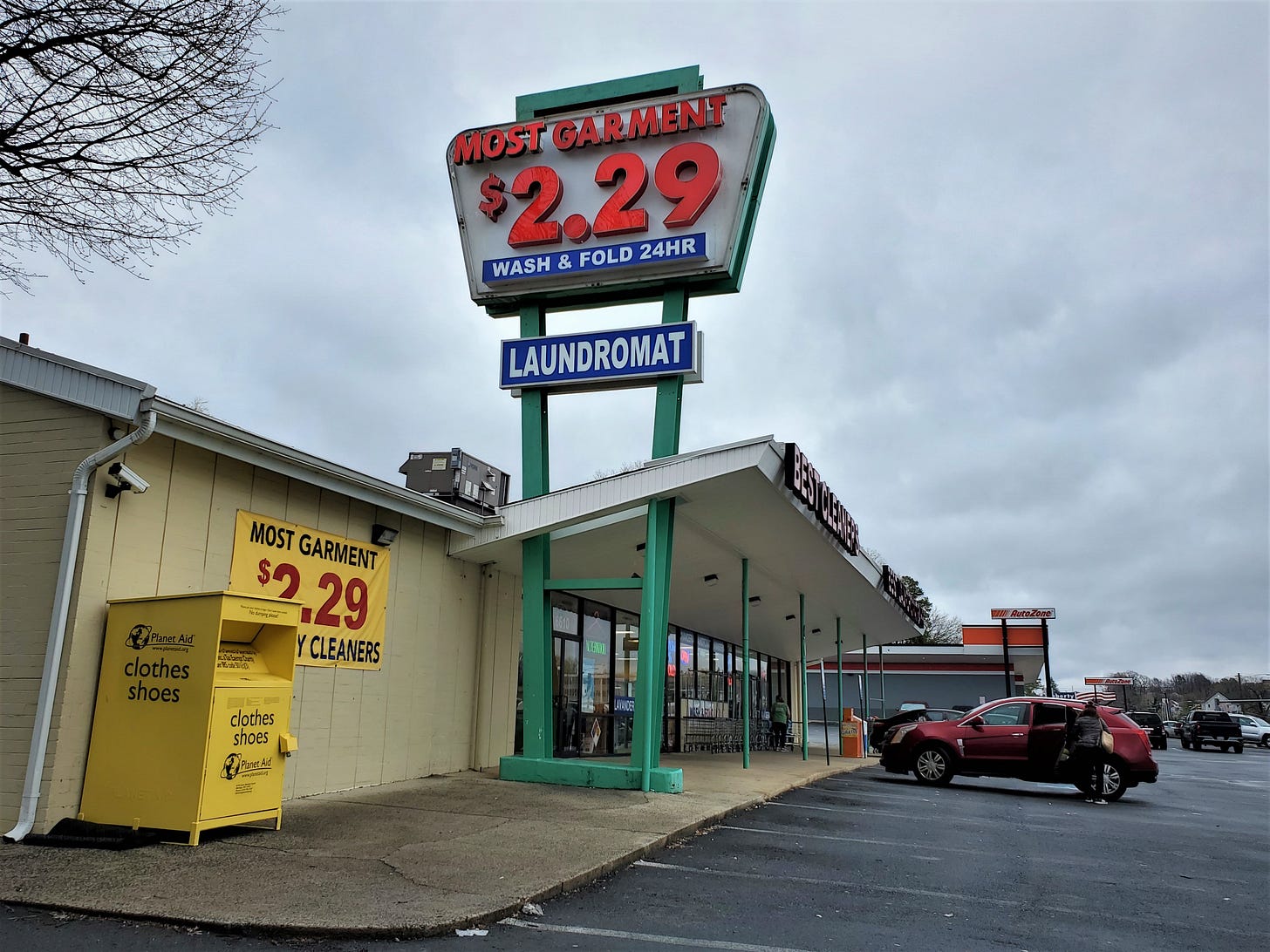 More of less fully intact, including the sign elements, this is the most fully preserved former Kinney I’m aware of in the region. This location is notable for having a sign that goes through the roof, which most Kinney signs did not do.