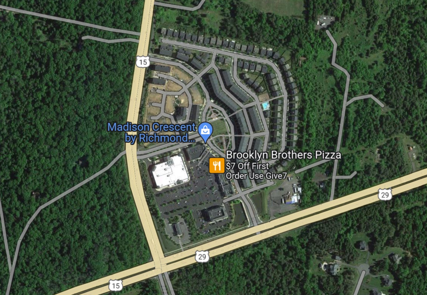 This is also in Prince William County: a mixed-use zoning district in which townhouses are sprouting up—in the middle of a rural-exurban stretch of U.S. Highway: