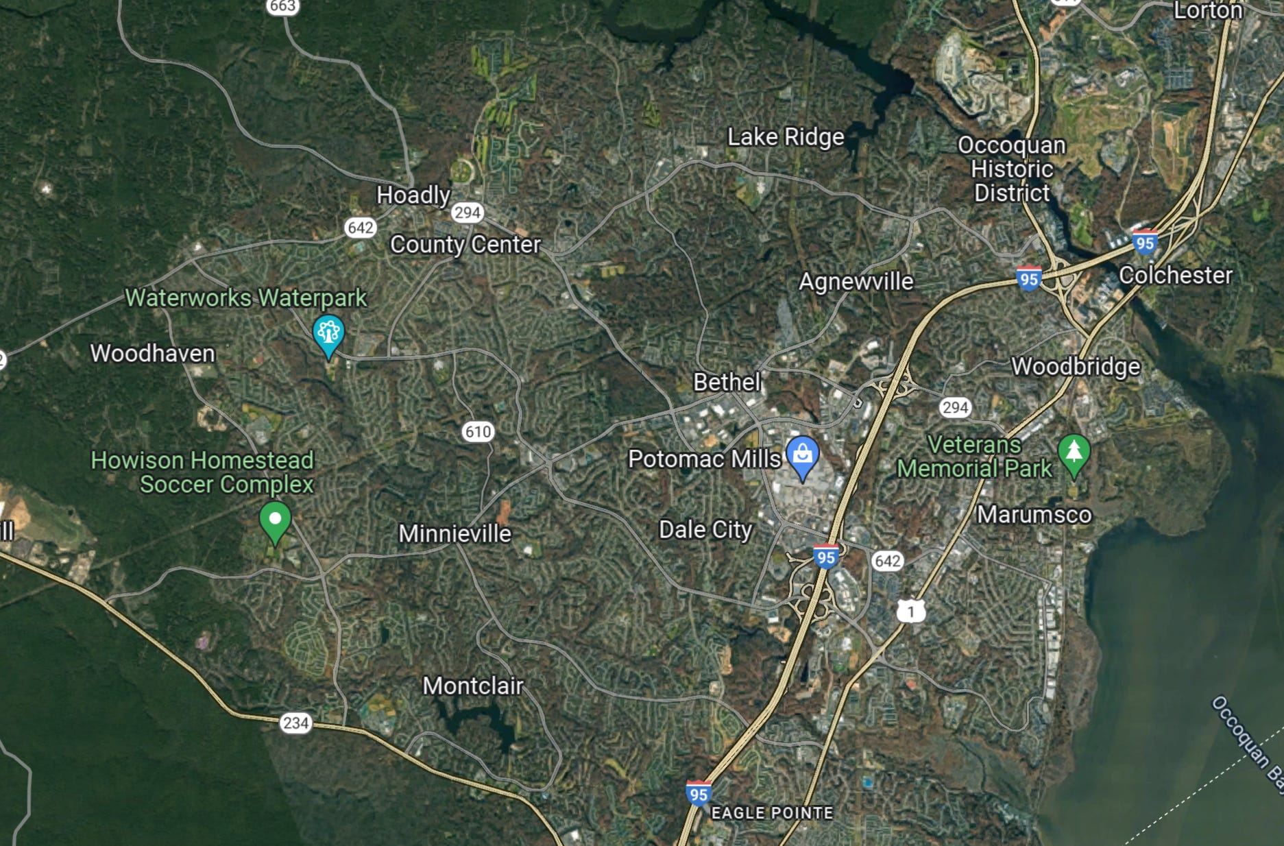 Woodbridge is not adjoined to Washington, D.C.: it belongs to Prince William County, which borders Fairfax County, which borders Arlington County, which borders D.C. Parts of Prince William County have been heavily settled since the postwar era, chiefly Manassas and Woodbridge. And Manassas has an “old town” which goes back much earlier, as do some other settlements. But much of Prince William is still rural, and much of the growth and population there now is recent and takes a typical suburban-sprawl form.