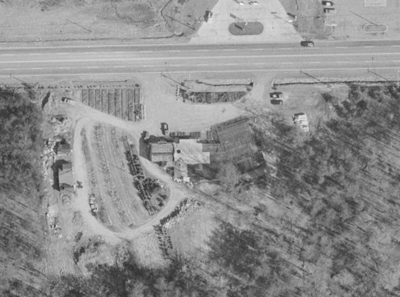 Here’s a 1972 shot from the Fairfax County archives, showing the large addition. You can see rows of trees or shrubs on the left, so this is during the nursery phase.