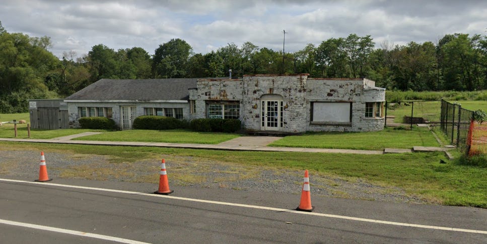 So how did this begin life? Well, I haven’t been able to pin it down with certainty, but it’s had a long life, to be sure. Some Northern Virginia Facebook groups have helped me piece together a general history, in this order, except possibly for the first two uses: Western/country-themed dance hall/beer hall (possibly Club Fairfax); restaurant (Wayside Inn), with tourist cabins on the property during this period; chinchilla farm and tree nursery; in-ground pool showroom, operated at one point by Sears; and then a series of thrift stores, antique shops, and furniture stores. It is now vacant.