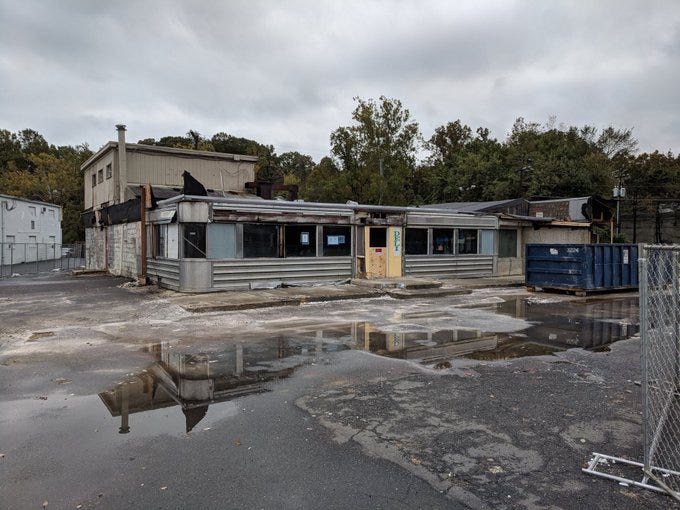 So a steakhouse-in-a-diner and its added-on banquet room became an ice cream shop and a separate, unrelated restaurant. I really wish I had known this while the building was standing, and gotten to visit the Carvel knowing I would be standing in the diner.