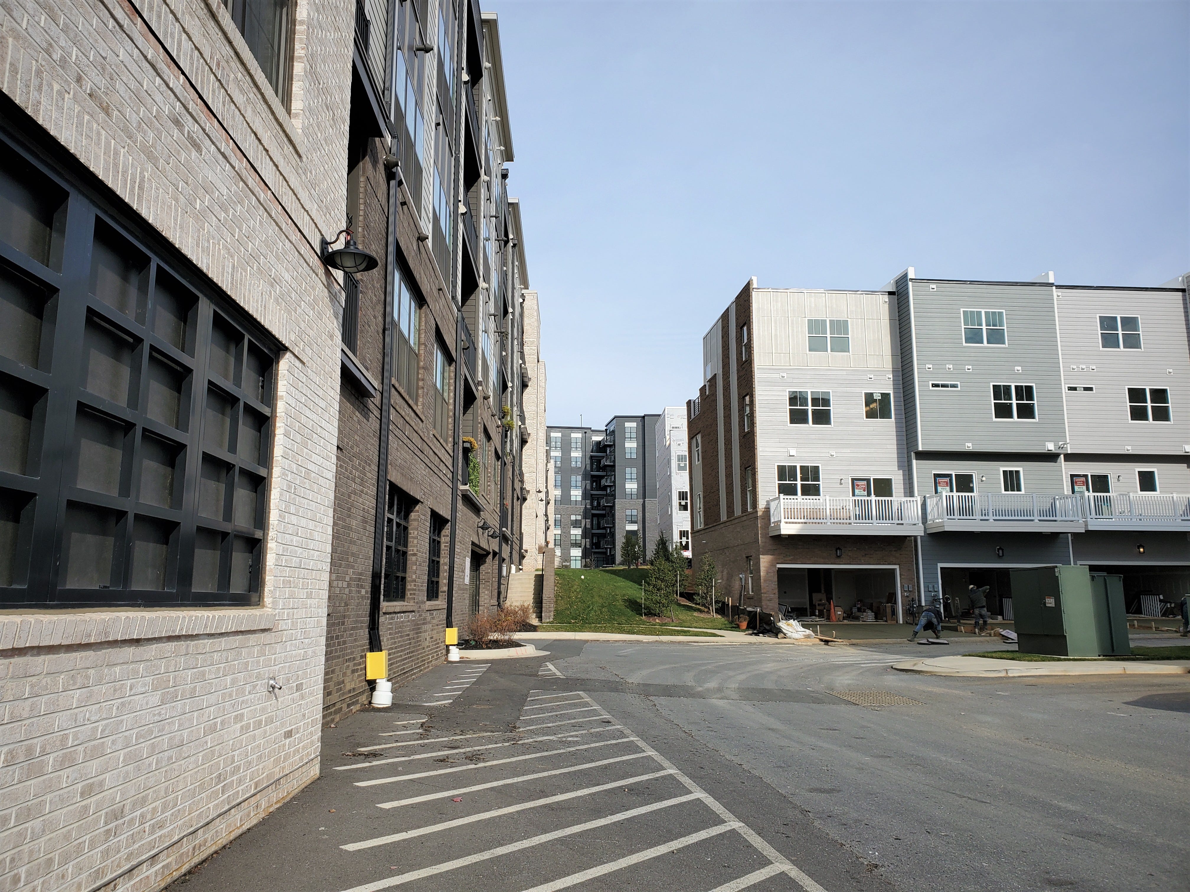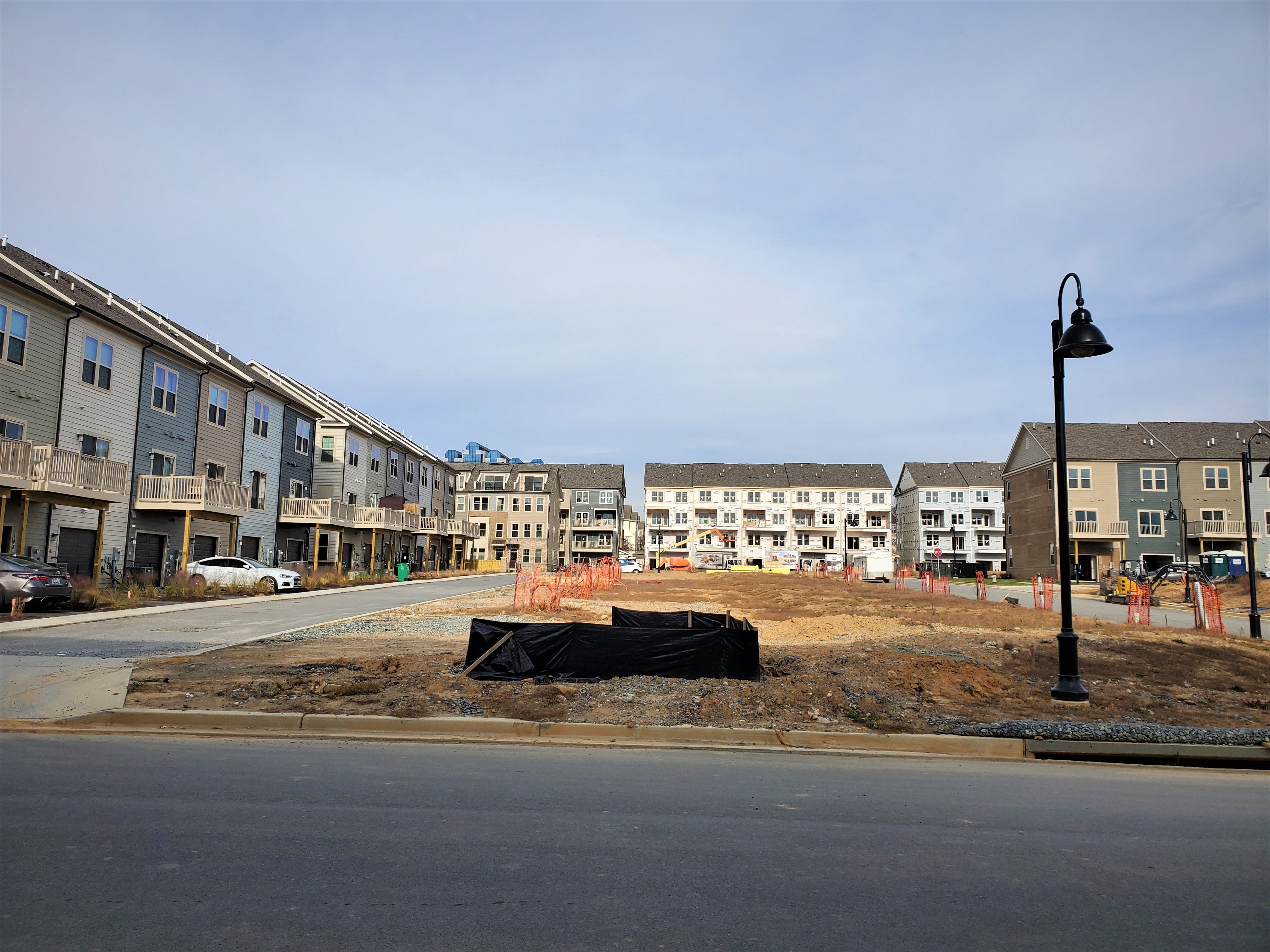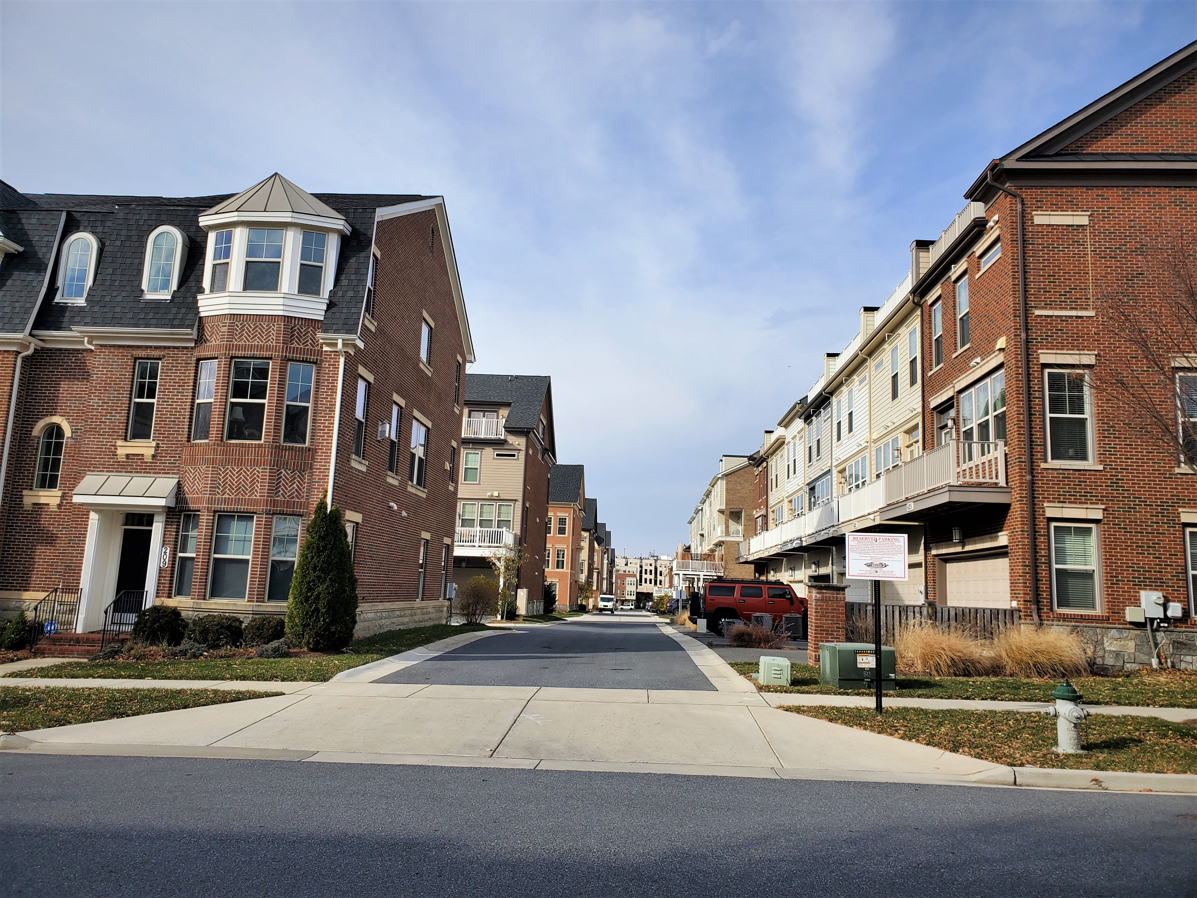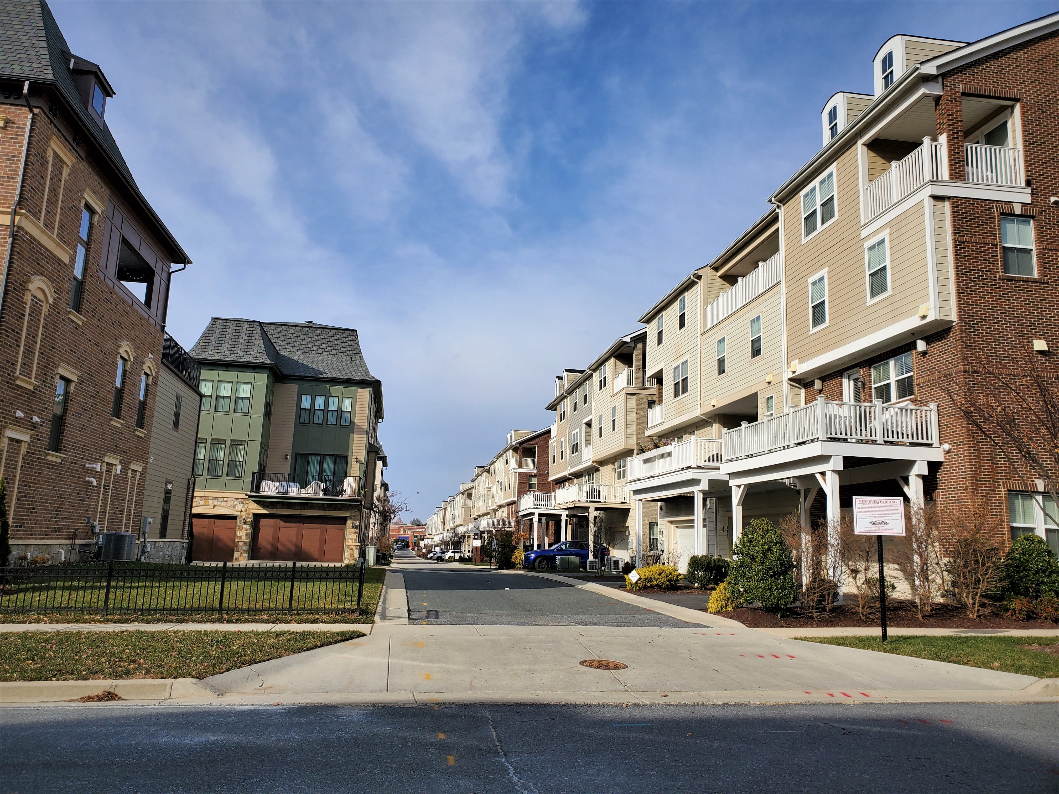 Because so much land is already built out under single-family zoning closer in to D.C., the less populated and still somewhat rural upper half of Montgomery County is seeing a boom in new construction. Our trip was to explore some of these new developments. (There’s really so much to be said about the fact that the density gradient is backwards in places like this—urban core, inner-ring suburbs with single-family zoning, and outer-ring suburbs with much denser housing.)